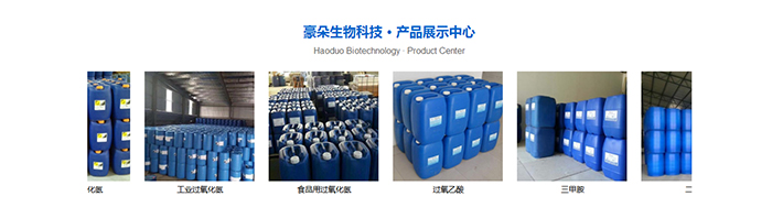 上海豪朵生物科技有限公司是一家專業(yè)從事化工原料等產(chǎn)品生產(chǎn)加工銷售的企業(yè),擁有完整、科學(xué)的質(zhì)量管理體系。主要業(yè)務(wù)有工業(yè)過氧化氫(雙氧水)(7%-70%),食品級過氧化氫(雙氧水)(3%-50%),試劑級過氧化氫(雙氧水),電子級過氧化氫(雙氧水),硝酸,甲醇,甲胺,甲胺醇系列,酸堿清洗劑等二十多種產(chǎn)品。
