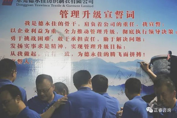 德永佳公司各部門負(fù)責(zé)人在誓詞前簽名,管理升級正式拉開帷幕!